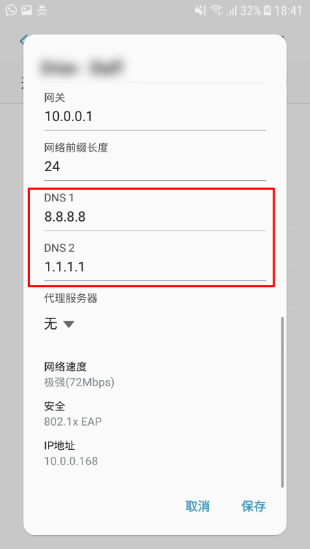 您必须连接Wi-Fi网络,才能可以更改设备DNS设置!